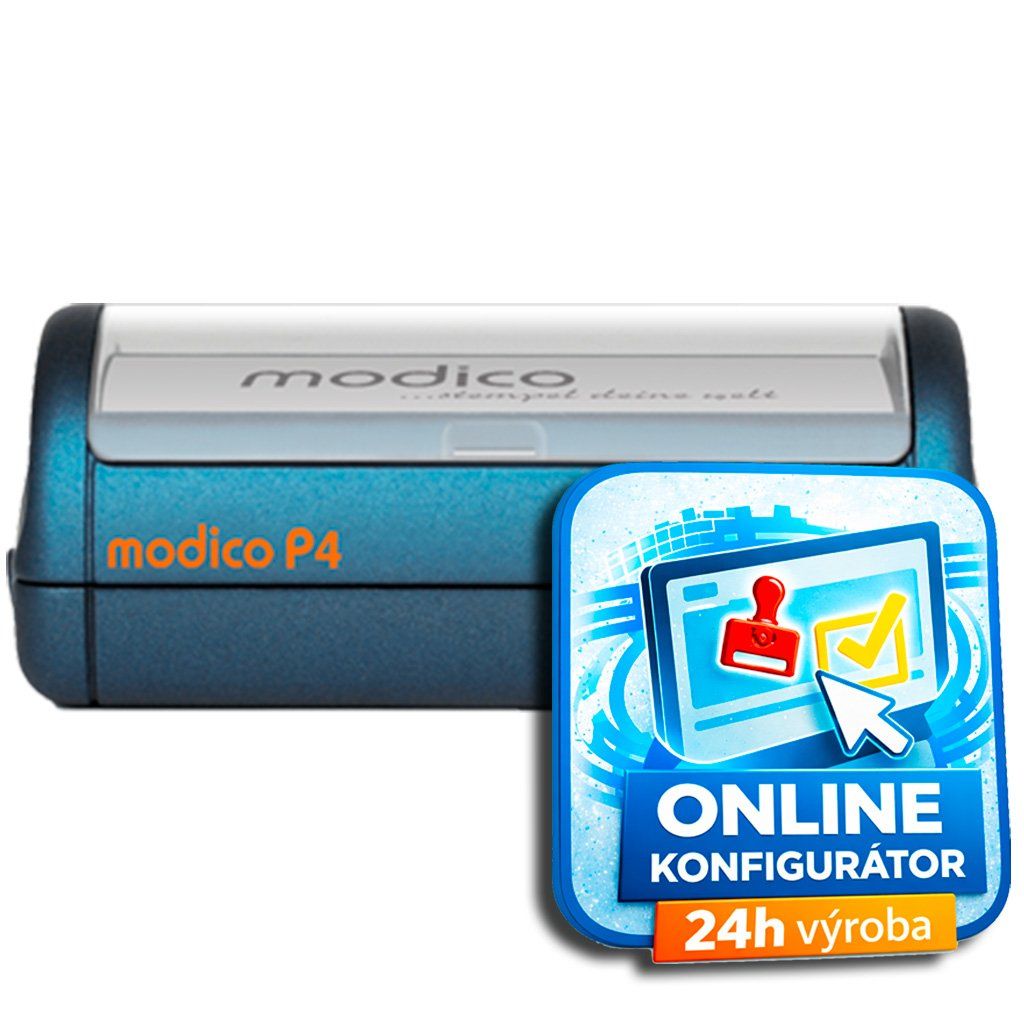 Profesionální razítko s vinikající a dlouhotrvající kvalitou otisku Modico P4. Tisková plocha 55 x 19 mm. Hlavní předností razítek modico je schopnost tisknout velmi tenkou linku a drobné písmo (např. podpis). Revoluční design: ergonomický design se soft feel povrchem. Barva těla: černá, červená, modrá, zelená, tmavo modrá.